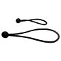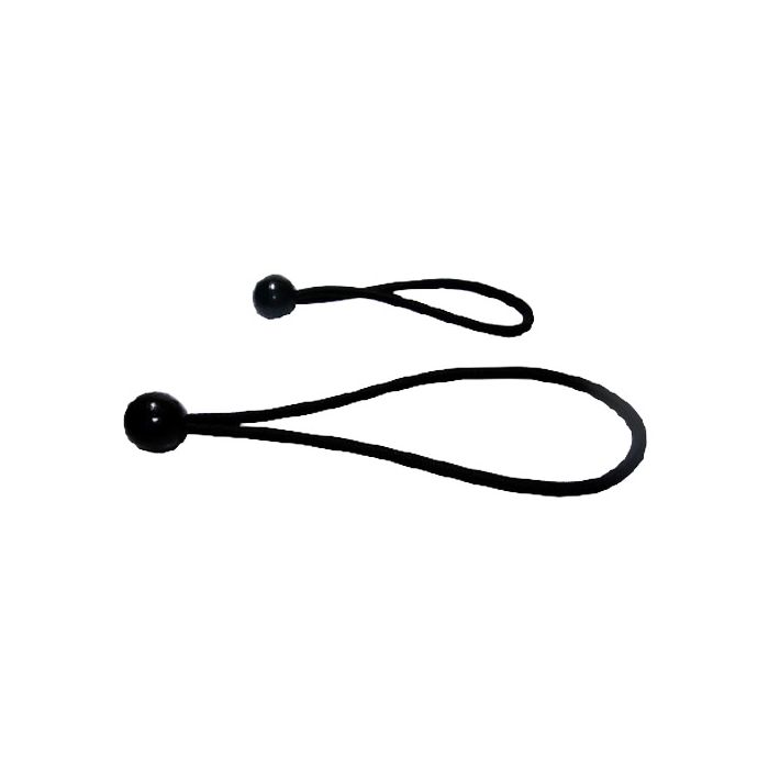 Cordón elástico con bola de plástico. Este tipo de gancho puede ser usado para fijar toldos o lonas en su soporte.