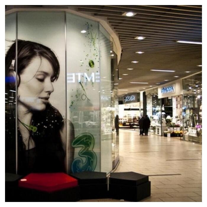 Transparencia Cristalina Su acabado transparente brillante permite crear efectos visuales únicos, ideal para escaparates y superficies de vidrio donde se desea mantener la visibilidad sin comprometer la calidad del gráfico.