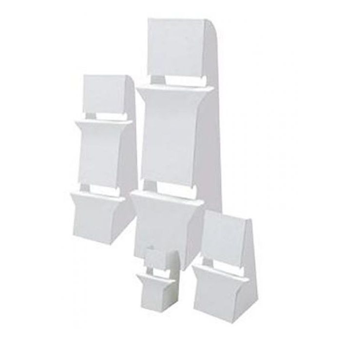 Peanas de cartón blanco troquelado. Ideales para soporte de todo tipo de paneles ligeros como cartón pluma, nido de abeja, etc.