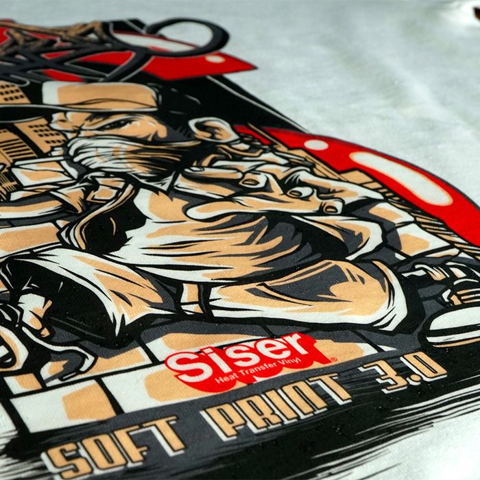 Este material PU, extremadamente fino y ligero, está indicado para prendas blancas o de colores claros. No requiere cinta de aplicación y es increíblemente elástico y suave al tacto, perfecto para diseños grandes.